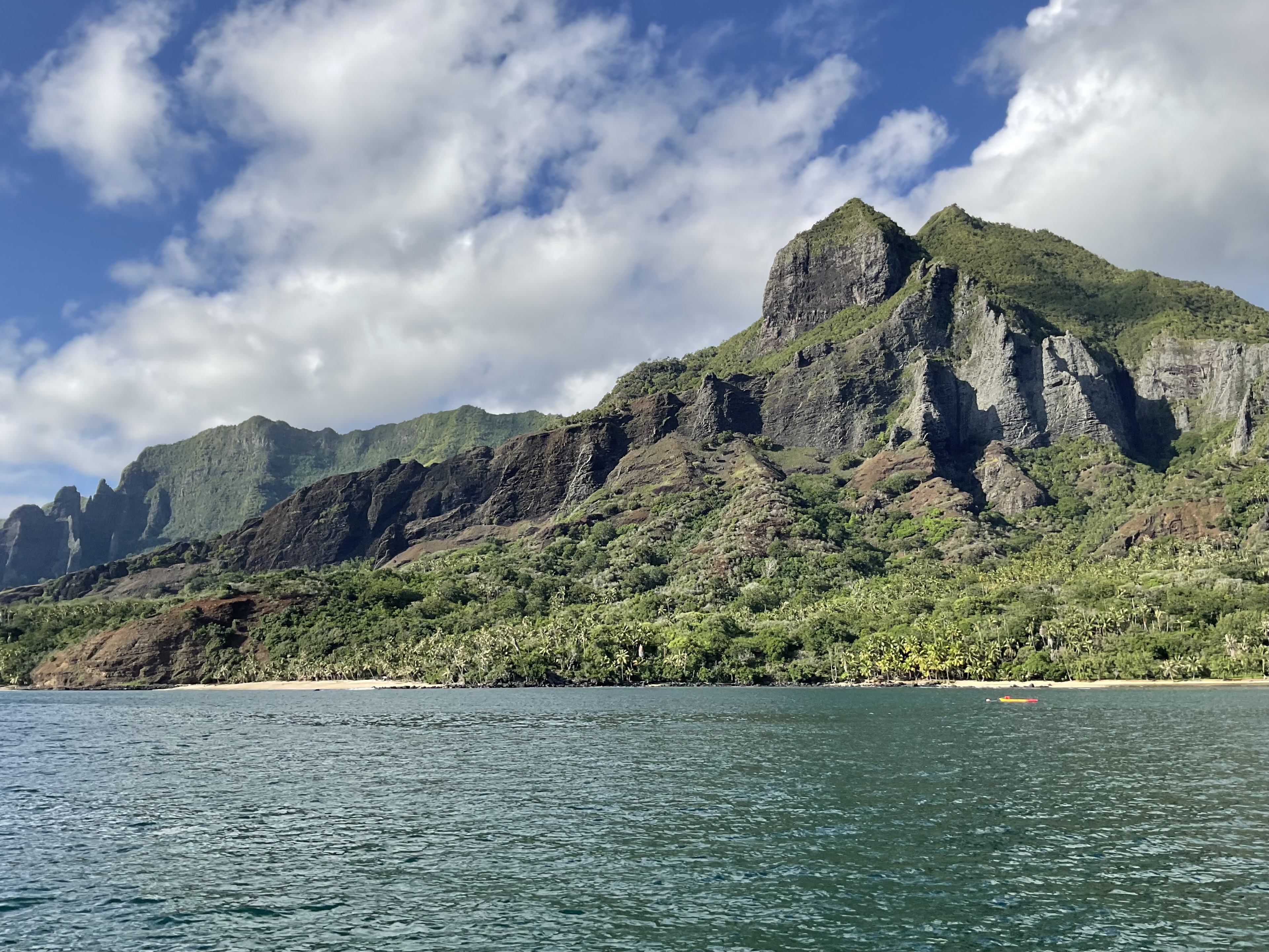 The sail to Tahanea (Tuamotus) from Ua Pou (Marquesas) in mid-July was a good one but definitely ‘boisterous’ with big, close seas tossing us around for most of the time.