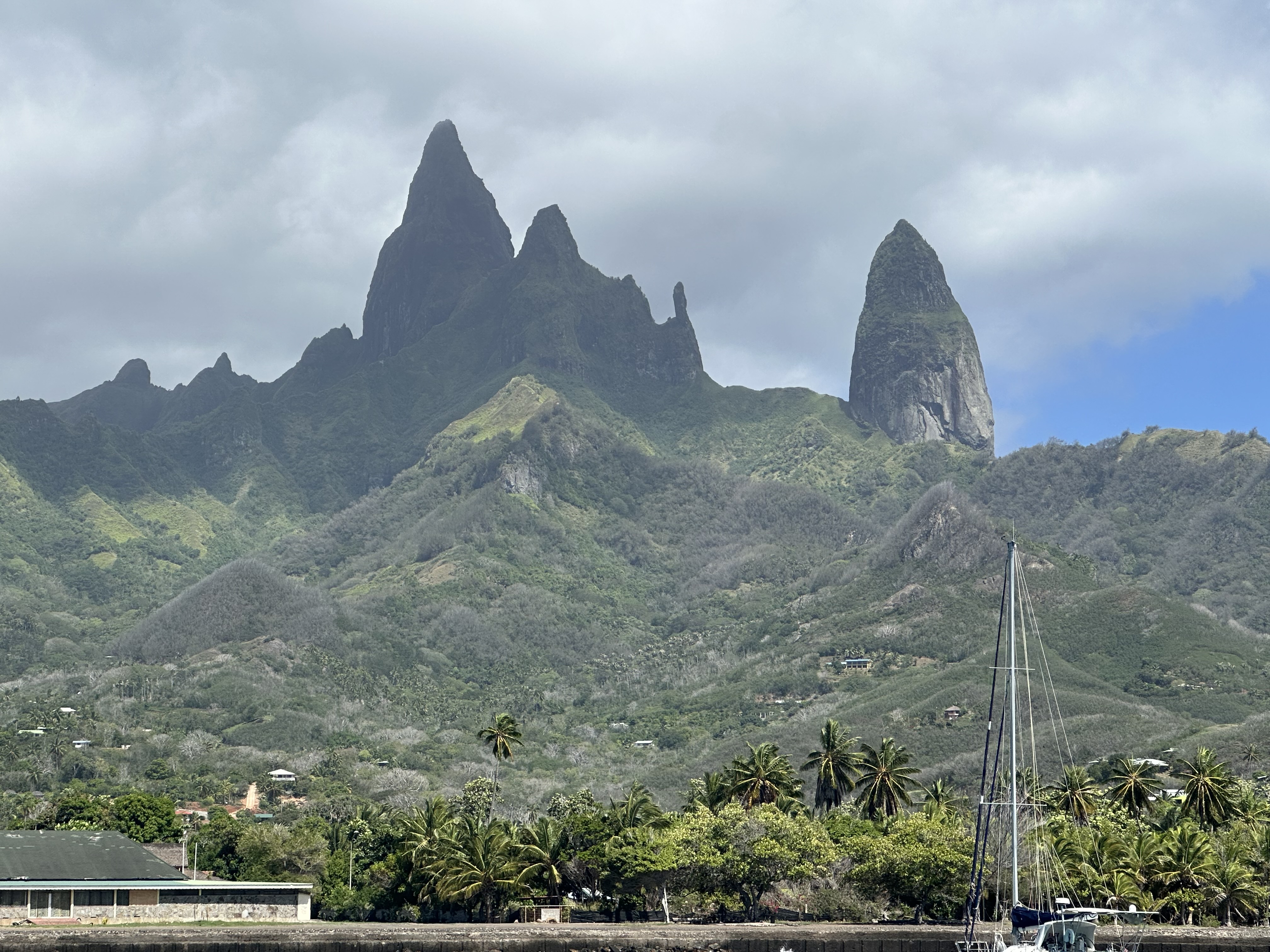 I’d kindly been given a berth in Taina marina, near Pape’ete, where a good friend, Miky, helped me fix a jammed first reef problem, and I also got an instrument problem resolved by Manatea – thanks to both! With other cruisers I’d met both in Ua Pou and again in Tahanea, we hired a car and made a lovely tour of Tahiti island. This was not something I’d done previously and the newly-renovated museum was well worth spending plenty of time in, in addition to enjoying the often-rugged scenery everywhere. Of course, I was able to stock up on French cheeses, pate and cream, etc, etc while in Marina Taina!