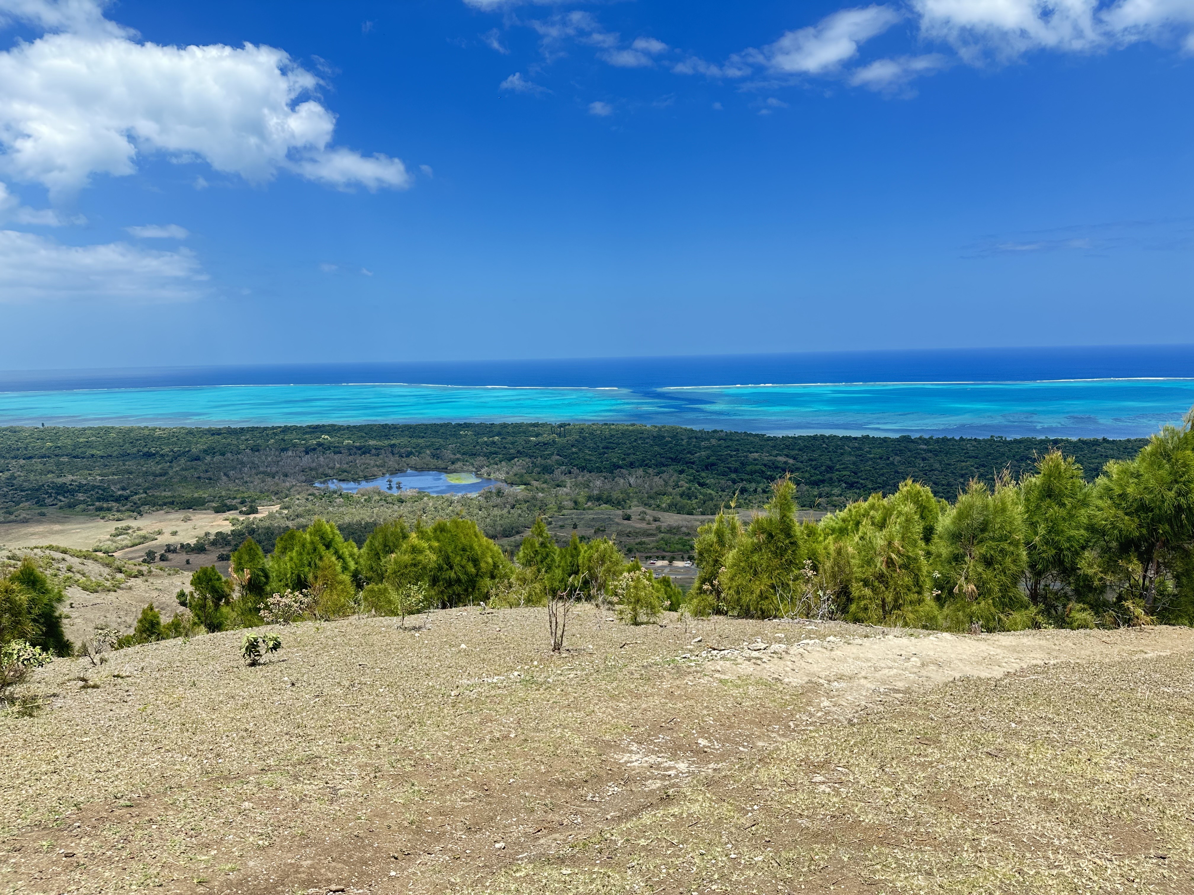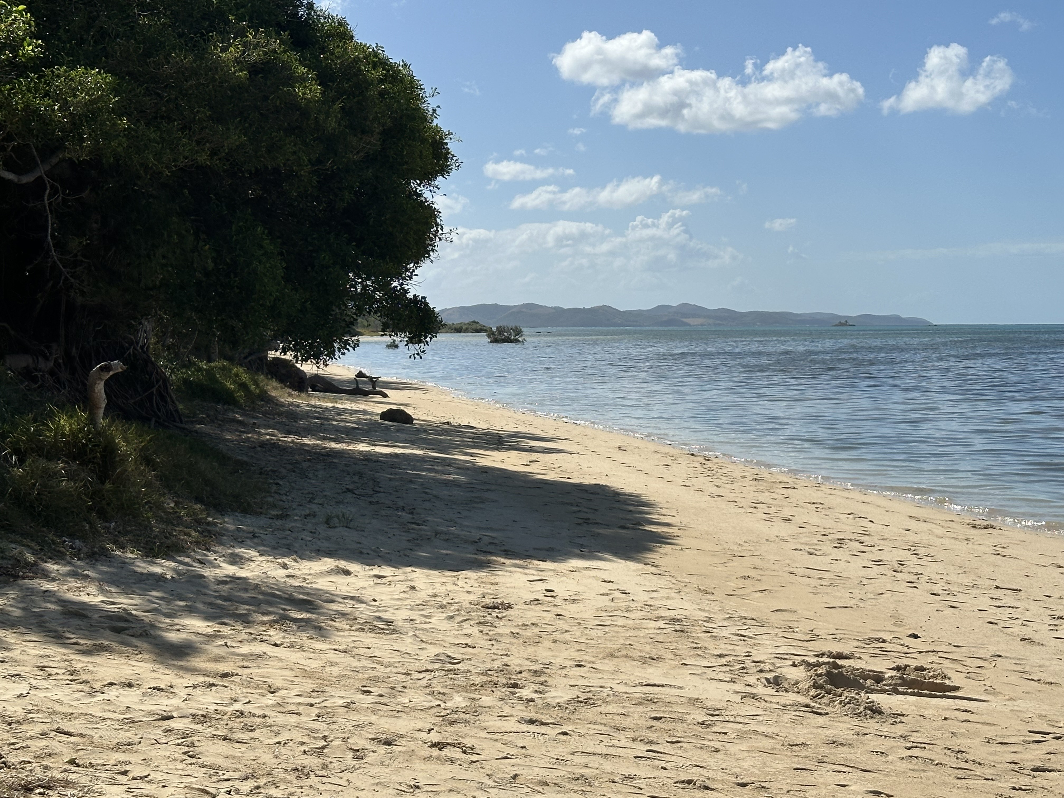 Watching all those high jinks was Mike – a New Zealander on a fishing trip – who later got in contact with me and offered to show me around the island. Accepting his offer with delight, I had a grand tour of everything the island has to offer, including a lovely lunch at an impressive island resort hotel. Wild pigs, goats, reef herons and egrets, fascinating old worn coral beaches, wonderful white sand beaches looking over the vivid blue of shallows towards the fringing reef with its white foaming breakers, driving along tracks through some dense wild forest with a lot of large crab holes (and crabs!) beside the road, impressive ‘curtain vines’ dangling from high up on a group of (wild fig?) trees …. None of the rain still falling that day could spoil what I was shown!