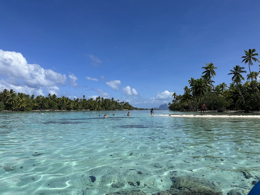 I was able to tie to a UNESCO-funded mooring buoy while in Toau – put there to protect the coral around – that gave me a great feeling of security! It was also lovely to enjoy fun and games on the beach nearby with some other cruisers around. (Amazingly, one from S. Africa I had met in Cape Town some years ago!)