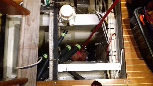 Well.... so much for hoping to get away early last week! The thoroughly dirty bilge took a time to clean (TG for strong degreasing fluid and a good mop! ), as did the hose end strainers, float switch and diaphragm pump, but all are looking pristine now. Hose ends needed to be replaced, also a water level sensor switch. It's a wonder I managed not to fall down the gaping hole for the last week but I was finally able to replace the main cabin flooring today.