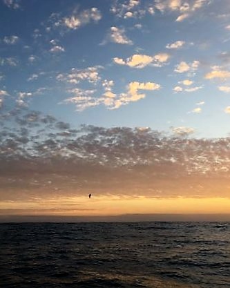 6:45pm Sun set a while go - birds were all around, mainly white-chinned petrels but a yellow-nosed albatross there as well.