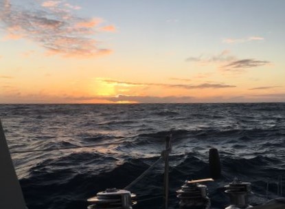 8:20pm Wind has backed a little - we're now making between E and ESE but the wind has also dropped so our speed is down around 3.5-4 kt - forecast to drop further overnight and into tomorrow.