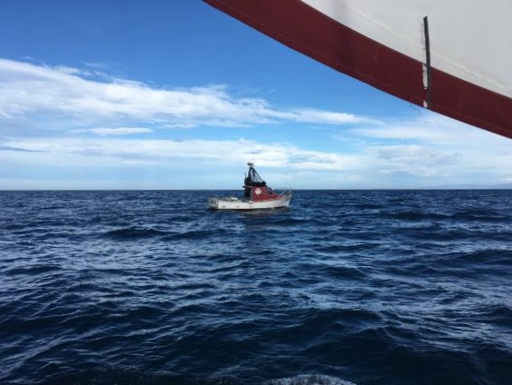 Have been awake a lot of time overnight, trying to keep boat headed N of Oamaru Hbr since N wind expected - but in light winds, all very difficult.