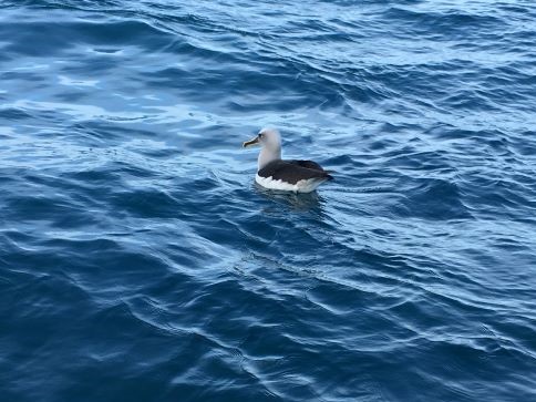 Time to prepare my reports for posting. Photos are of albatross (almost certainly a Southern Buller's, from head colouring and thick yellow base to upper yellow line on bill), that came close to 'Nereida' last week, off Timaru, in no wind.