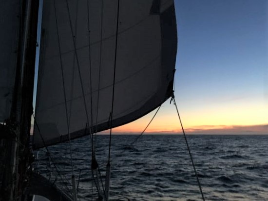 COMMENT: Bright & sunny. Thin cloud layer. Goosewinged.