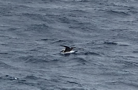 A repeat news item from yesterday afternoon - finally seeing Wandering albatross close by and an all-dark sooty petrel(?) as well as occasional shearwaters! I'd gone up on deck to check swell direction and cloud cover and ended up taking time tidying lines in cockpit and saw a grey and white bird swooping nearby (shearwater or prion? I must check in my bird book to remind myself) and then another, very dark, bird (petrel?). Then, along came a Wandering albatross - magnificent! Shortly afterwards, a juvenile came close - they were clearly parent and young and rested for a time in the sea close to Nereida - so difficult to take decent photos in such big swell and with the boat pitching and tossing. (apologies for poor photos!)