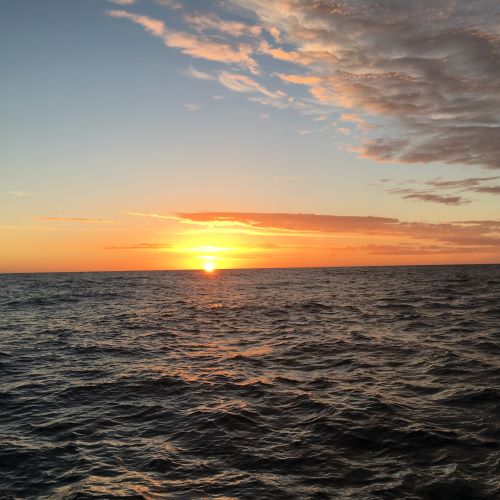 Tuesday - Christmas Day Merry Christmas! 5am - some of us were up early! Downloading weather files and emails - lots of Christmas greetings - thank you! We've been ambling along rather slowly all night, raining now. At 2.30am, took a photo of the Southern horizon - thin line of bright gold - sun not far below, clearly! Back to my bunk for more sleep...