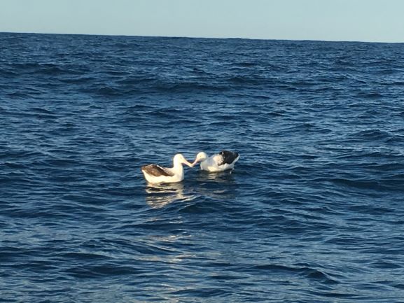 A pair of albatross rested in the water very close by - and were rubbing their beaks together in affection - 'spooning'!