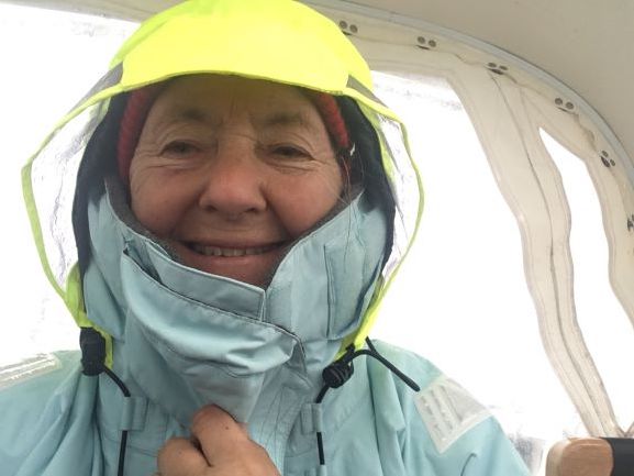 1.45pm Finally back on course - saw we were headed SW after a wind shift so, after gybing around again, we are now headed NE... Still grey and drizzly, with light wind still, but wind should now strengthen slowly.