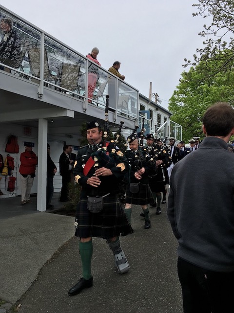 I'm adding photos below of the opening days at Royal Victoria Y.C. on the Saturday and at the Canadian Forces S.A. the next day - both Clubs very welcoming and both days were very enjoyable - good to get out on the water for each club's 'sail-past'!