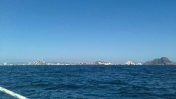 Old Mazatlan Harbour approach with distinctive high Hill to N of entrance not long after leaving.