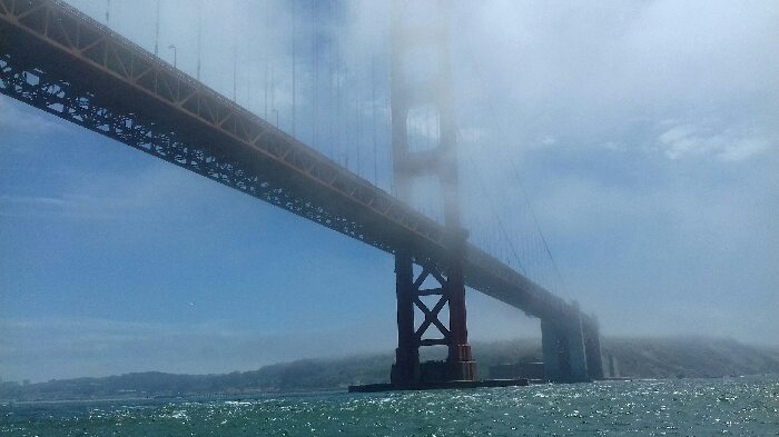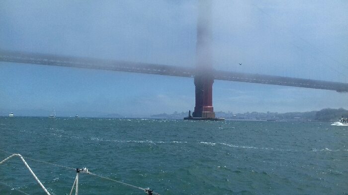 Saw a whale spout in the distance outside the Golden Gate -and then, just as I was organising the genoa, in the sudden good wind inside the GG, it surfaced right beside 'Nereida'....! Of course, it disappeared before I could grab my camera!!