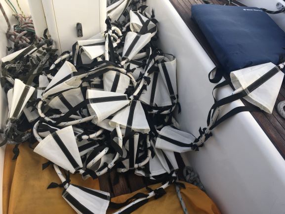 Cockpit is now full of line and cones - need to re-pack it but will have to wait for daylight tomorrow - no strong wind or weather expected so OK to leave it there overnight but must deal with it urgently in the morning.