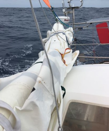 About to furl in genoa a touch (to first reef mark) so I can get another short sleep again - didn't quite get enough overnight... (8:30am Still making 6-7kt, despite furling in)