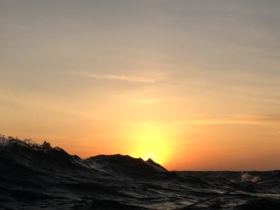 5:30am Dawn came around 4:30am, bringing a nice NW wind with it .. and so I didn't get back to my bunk... Gybed the sails and we're beam reaching now at just over 3.5kt - big improvement! Feeling a lot happier to be making a better speed and wind should increase over the day. More sleep now...