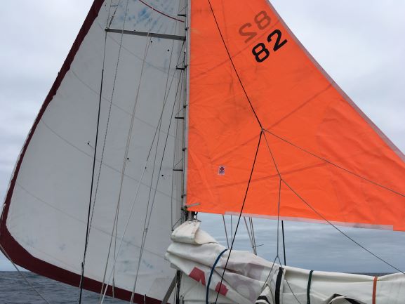 The idea of hoisting the trysail was to give a bit more speed, or for use in strong conditions with the staysail, as well as helping balance the genoa better, and also give a possible heaving-to option - which I don't have just now.