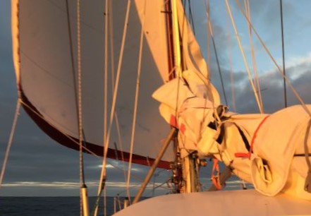 7:30am Was woken with feeling something was amiss - we were drifting N in light wind - now from SE Can't make our preferred course to ESE - being forced NE at best, if very close hauled. On alternative tack, would head towards Gough island.